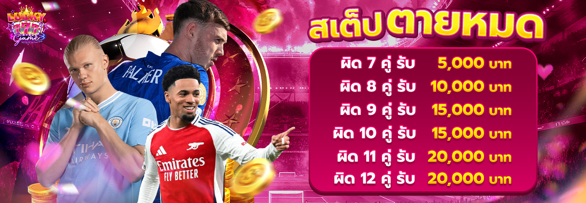 เเทงบอลสเต็ป 5 คู่ ได้เต็ม 4 คู่ เสียเต็ม 1 คู่ ราคาน้ำเเต่ละคู่ 1.80 ขึ้นไป รับโบนัสทันที
